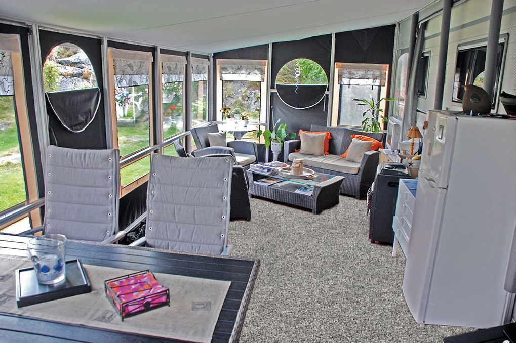 Gulvteppe for bruk i helårstelt. Dette er et behagelig og slitesterkt teppe for å gjøre campingopplevelsen enda bedre. Vi leverer teppene i to ulike farger, Grigio Steel som er en pen grånyanse, og Corn Black som er en mørk nyanse i sort og brun med grå detaljer.